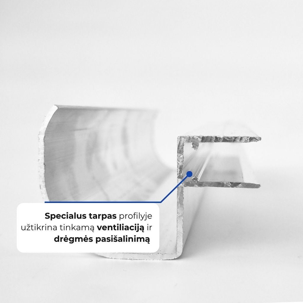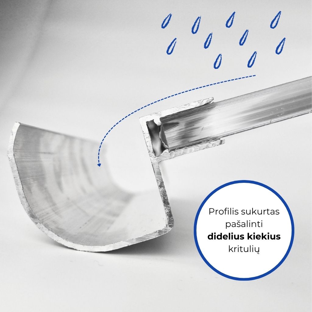 • Vieta: Profilis montuojamas tik nuolydžio apačioje ant ventiliacinės juostos.