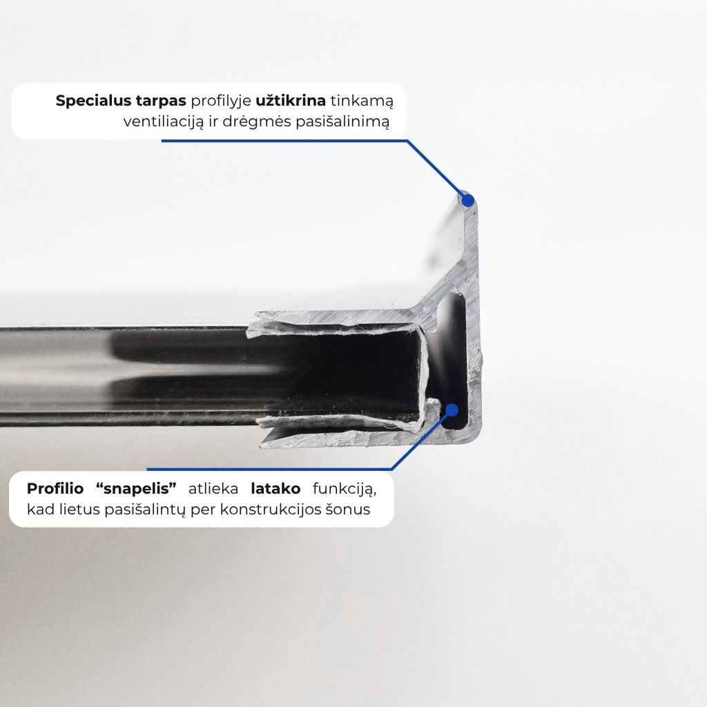 Profilis atlieka kanalinio polikarbonato plokščių tvirtinimo, sujungimo ir prispaudimo funkciją ✅ Maksimalus sandarumas, apsauga nuo vandens pratekėjimo ✅ Modernus vaizdas, profilis gali būti dažomas bet kokia spalva ✅ Aliuminis yra standus ir nesideformuoja nuo karščio ar šalčio ✅ UV apsauga ir ilgaamžiškumas