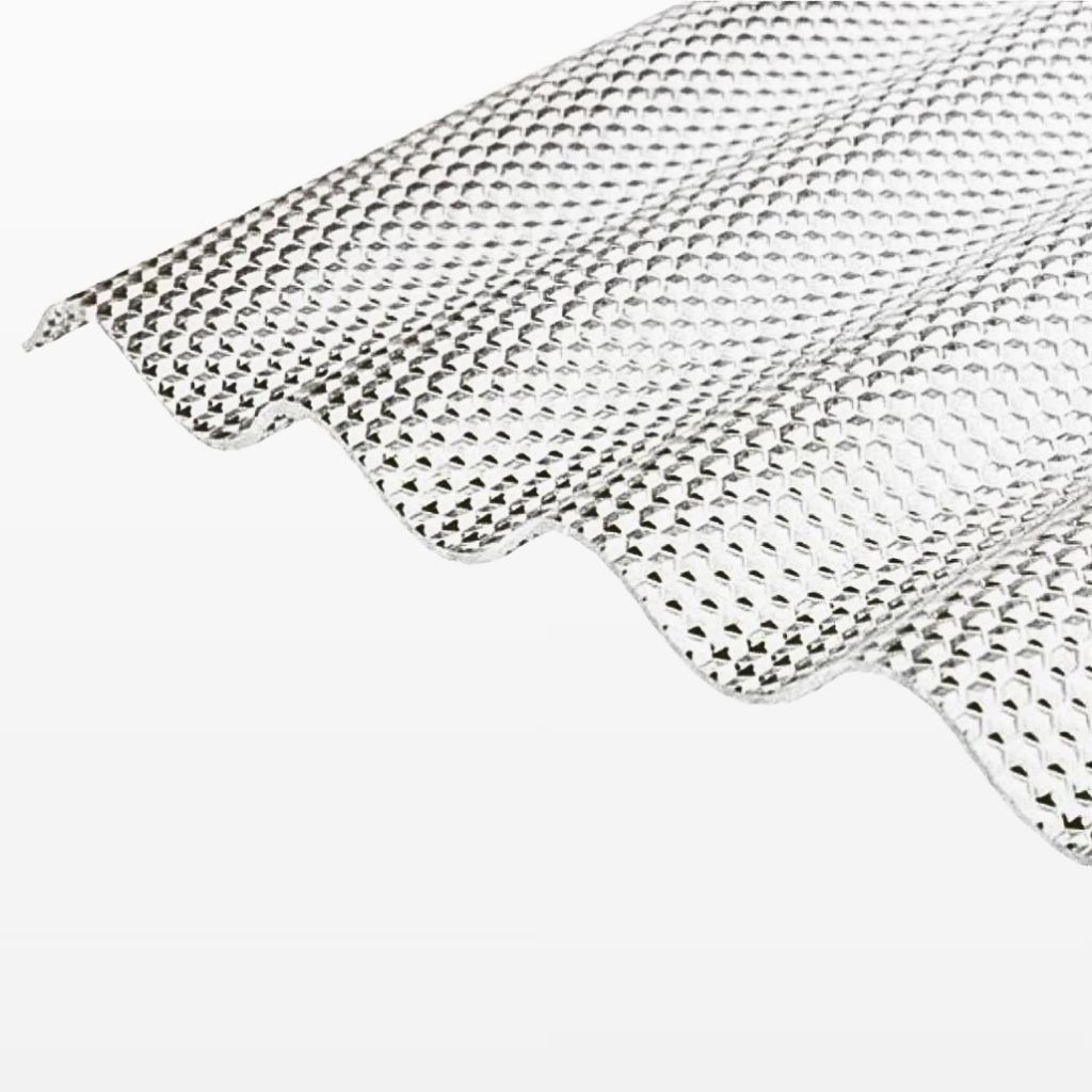 Profiliuoti polikarbonato lakštai  ProDiamond – ypač tvirta 2,6mm  storio banguota polikarbonato plokštė su „deimanto“ reljefu, stiklo skaidrumo šviesos pralaidumu, dideliu atsparumu smūgiams ir apkrovoms, temperatūrai ir ilgalaike UV apsauga.