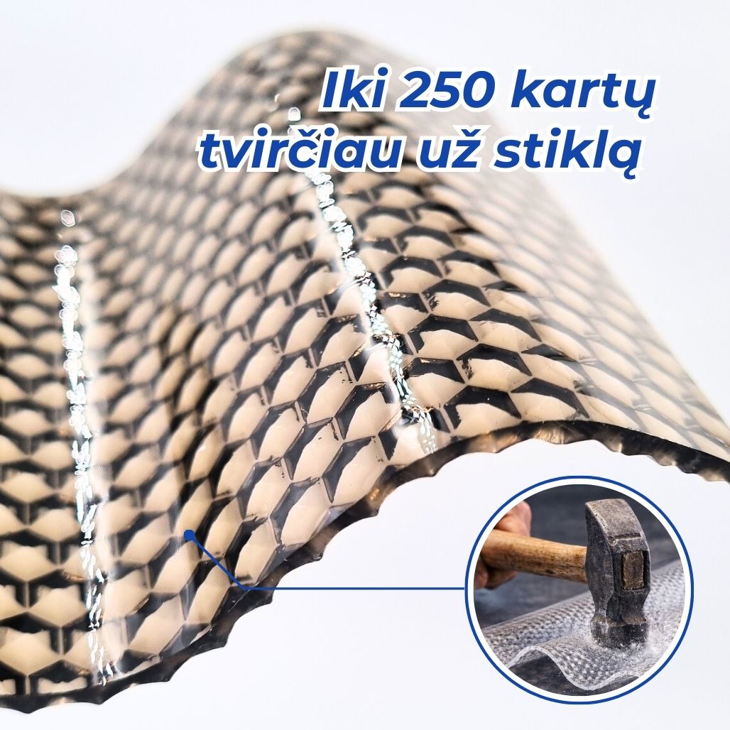Plokštės yra daugiau nei 3 kartus storesnės lyginant su įprastomis banguotomis plastiko plokštėmis, todėl praktiškai yra nesulaužomos.