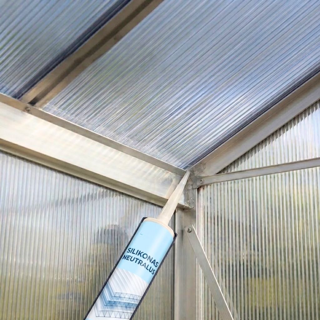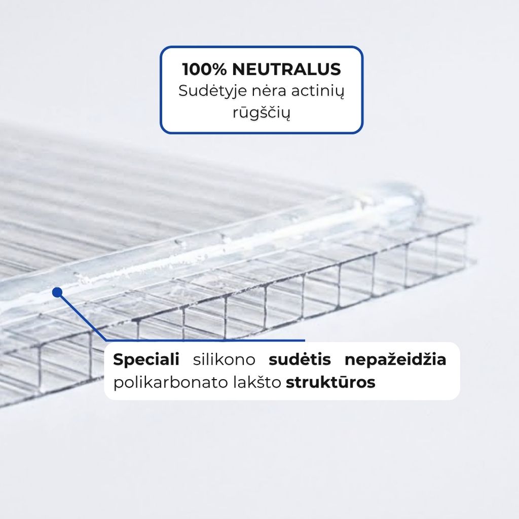 Aukštos kokybės, elastingas, vienkomponentis hermetikas silikono pagrindu, skirtas polikarbonato plokštėms sandarinti.